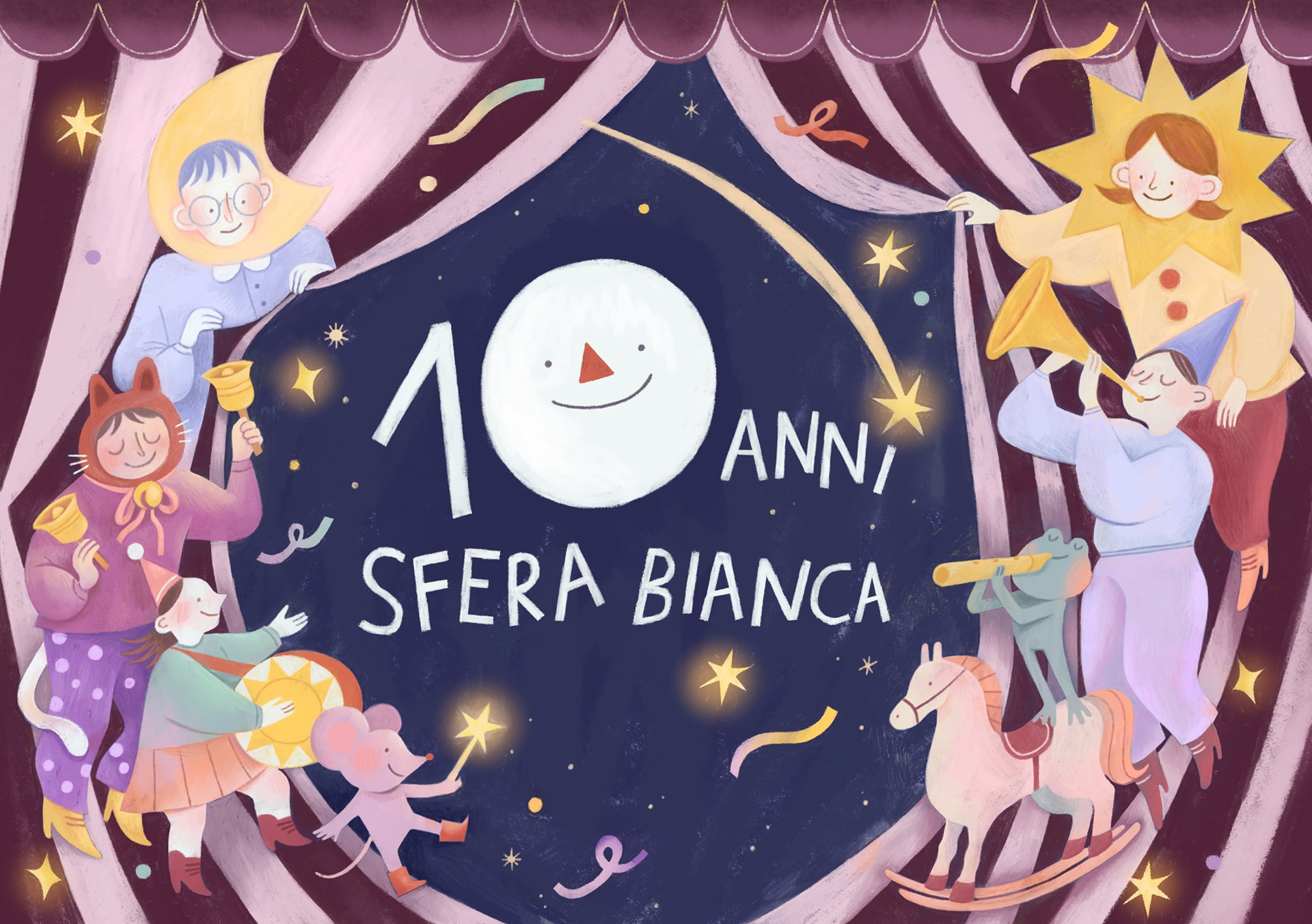 Dopo un anno torna con una nuova collaborazione, l'amata cartolina per il Centro Sfera Bianca. Quest'anno l'illustrazione è dedicata ai grandi festeggiamenti per i10 anni di attività!
